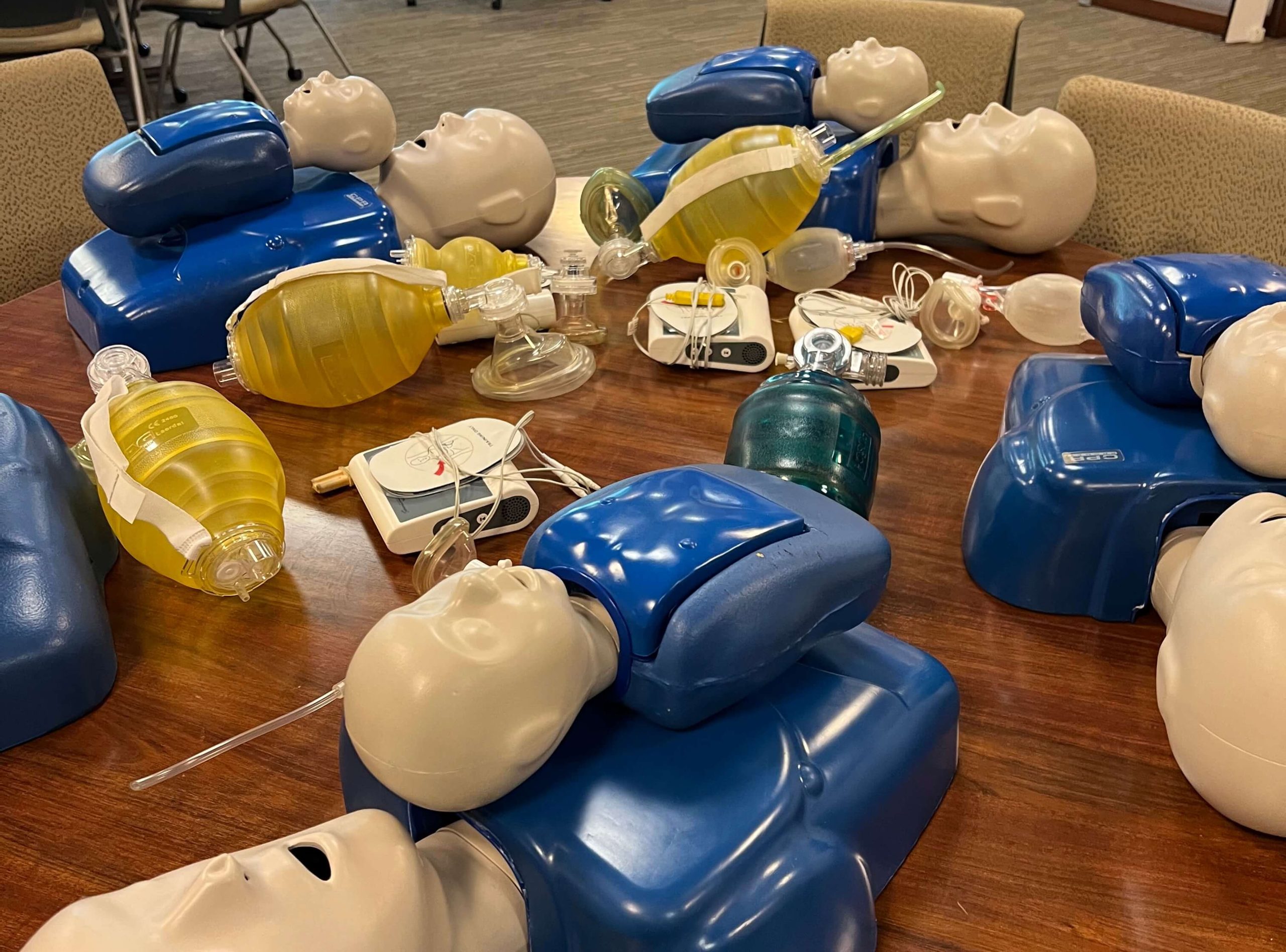 - Practice hands-on skills using manikins (chest compressions, rescue breaths, AED use)